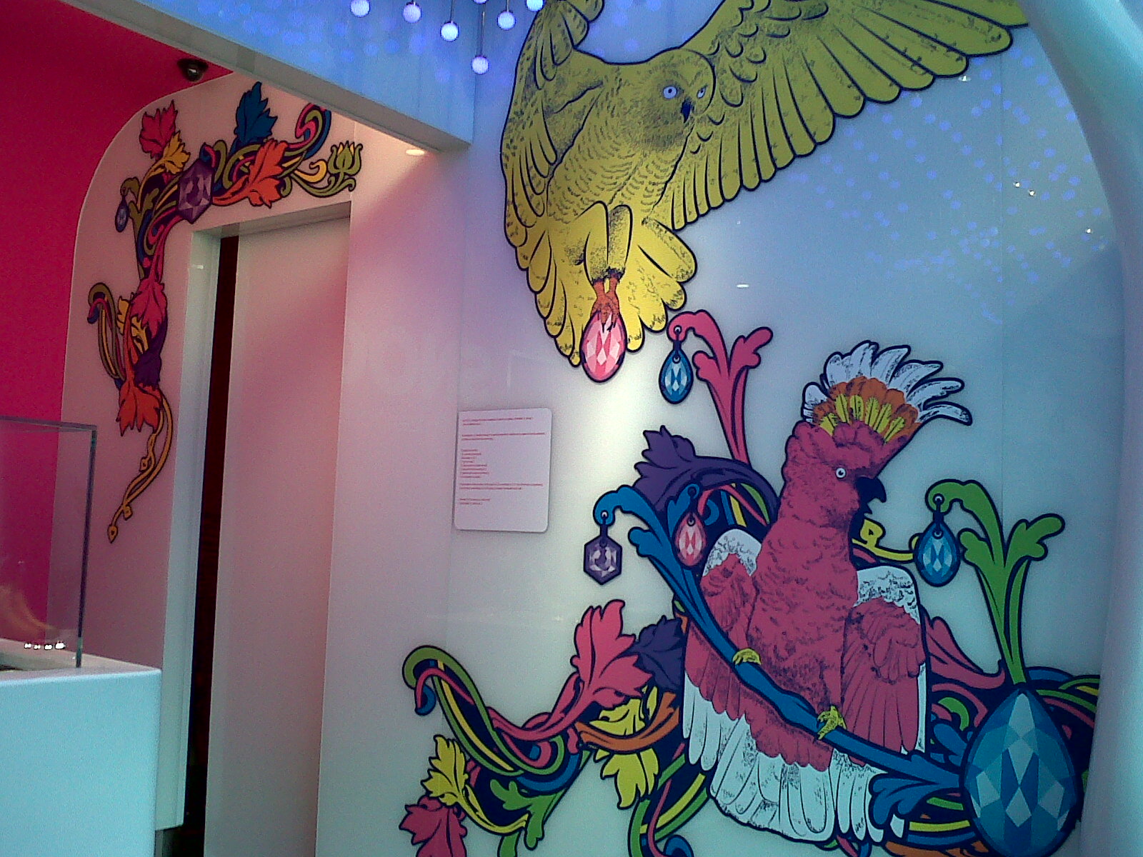 Now unbelievably (especially considering the afternoon tea we had eaten) we decided to stop in this frozen yogurt cafe and partake of their lovely guilt free yogurt – fat free and sugar free (they use agave syrup to sweeten the yogurt). As you can see from the pictures it is very brightly decorated and even has a galah on the wall.