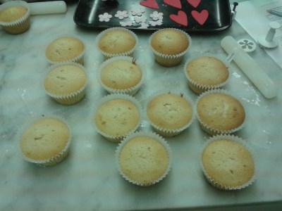 The instructor Paul was great, even though he was teaching us about cupcakes he gave us lots of tips for other baking we may be doing. We also got to make roses out of sugar paste, and learnt about decorating our creations. We had to do everything by hand, so by the end of the night I had a very sore arm, as I usually use my hand held mixer to cream the butter and sugar – you’ll be relieved to know that I haven’t taken a photo of my very sore looking thumb on which I developed a huge blister and then rubbed the skin off whilst beating.