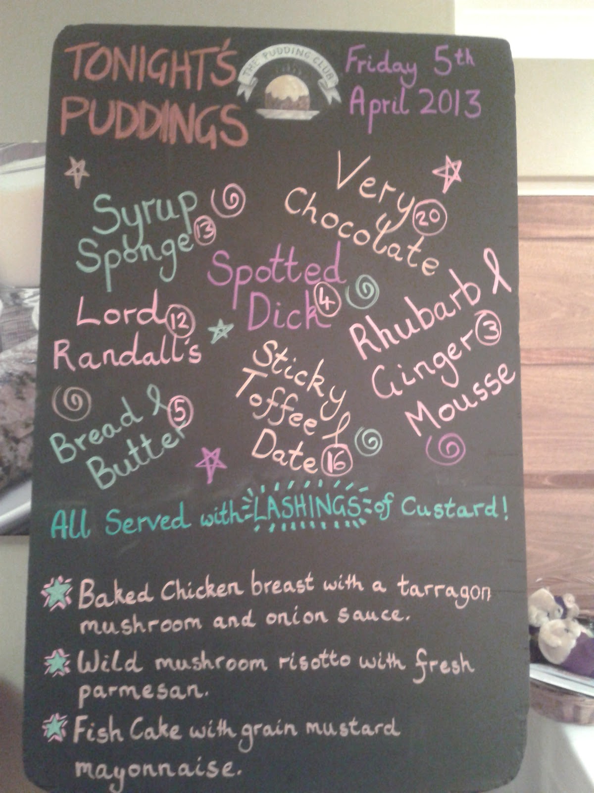 So now to tell you about the Pudding Club – it is a meal that consists of a main course, and then seven puddings!! It began in 1985 and at the end of the night you get a certificate to say you’ve been part of the Pudding Club. The rules of the club are that you can’t go and get another pudding unless your bowl is empty, so it was a challenge that we were willing to accept.