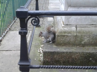 When we got to the graveyard there were people there feeding the squirrels with peanuts, and the squirrels were very friendly, thinking that everyone had food – I know they’re technically a pest but I think they’re very, very cute.