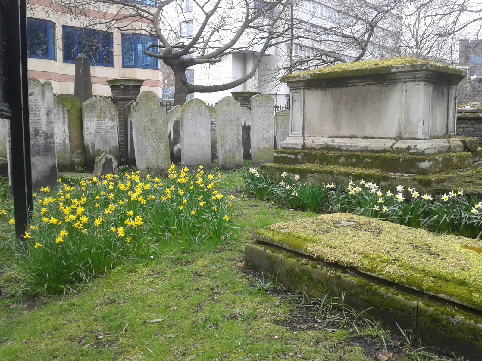 It’s a really atmospheric graveyard, with headstones at all angles – higgledy piggledy throughout the space, interspersed with spring flowers. It’s amazing how many inscriptions have survived considering how old they are.