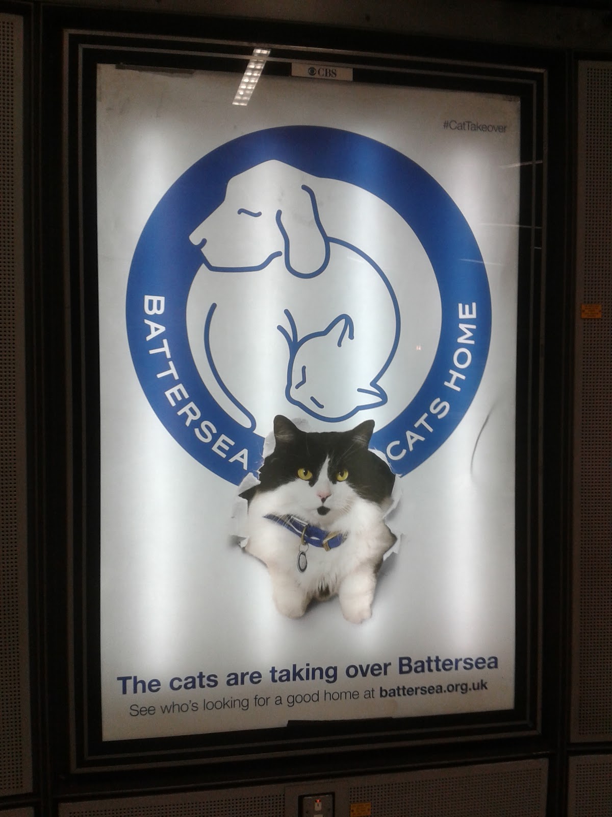 P.S: Final picture is a poster from the underground for Battersea Dogs and Cats Home which I rather like – the cats are taking over! I know this probably means that there are lots of cats that need rehoming but I like to think it’s a sign of things to come – that’s why you should always be kind to cats, as when the animals rise up, they will be in charge.