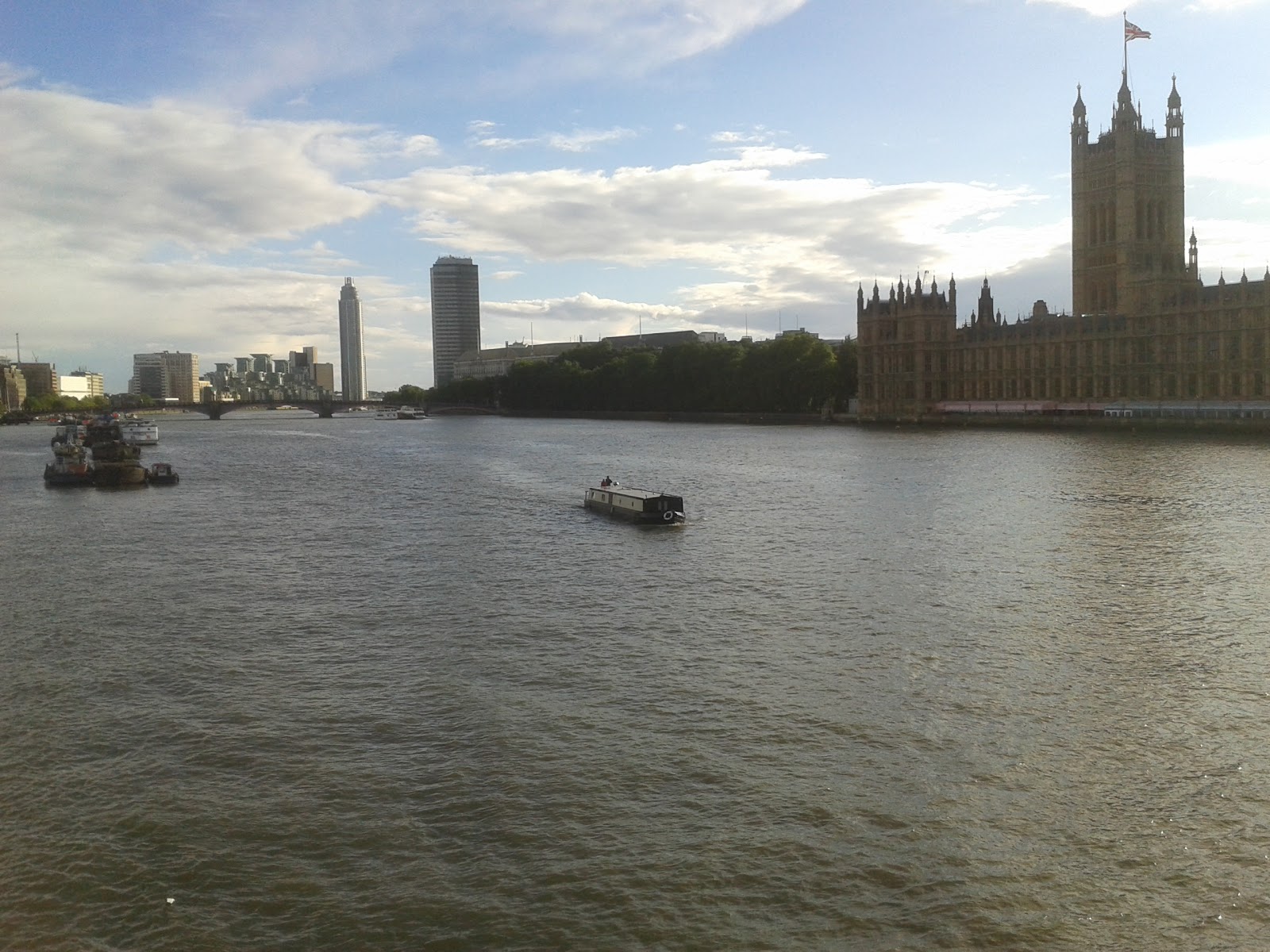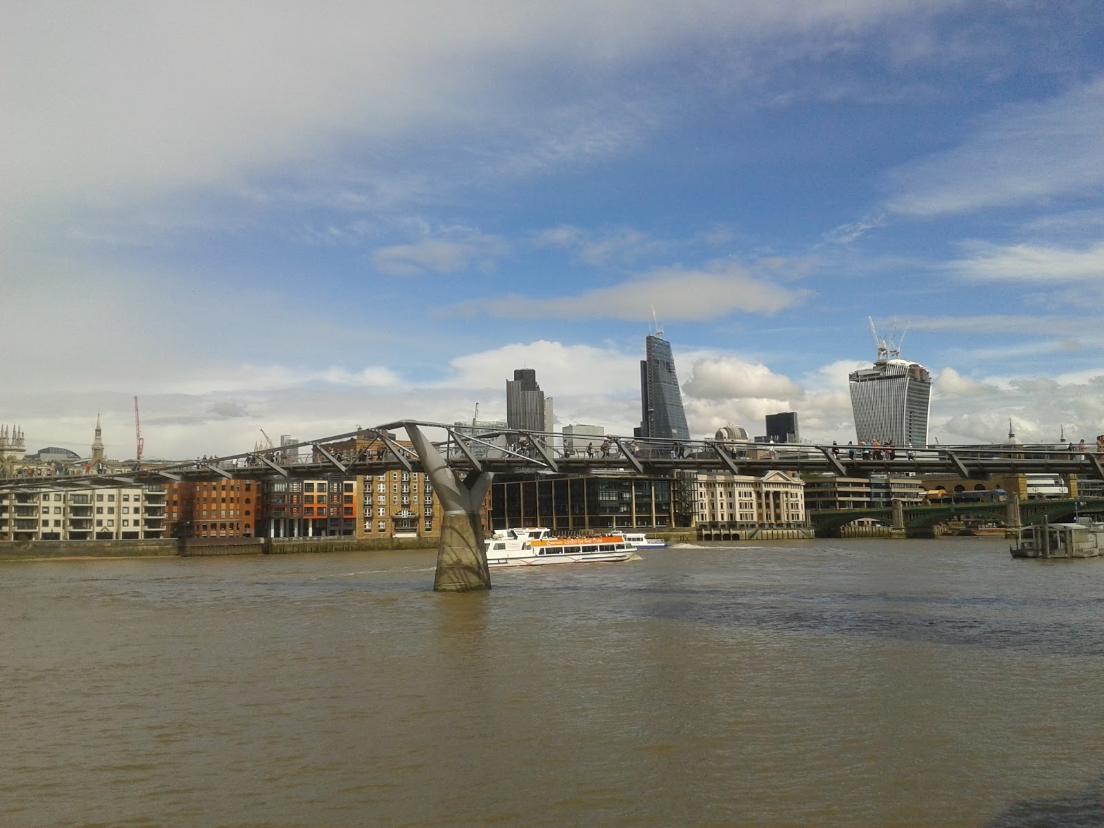 | I liked this view as in the front are the old houses and the Globe Theatre, and peeping over the top is modern London |