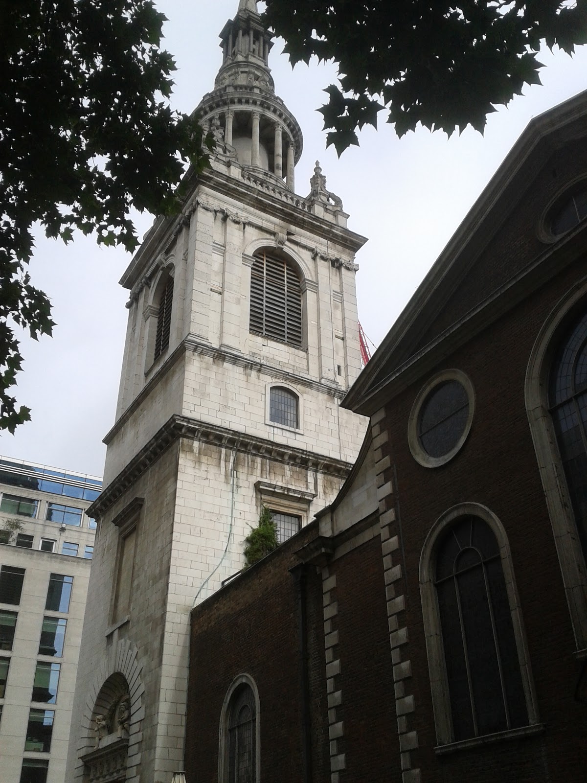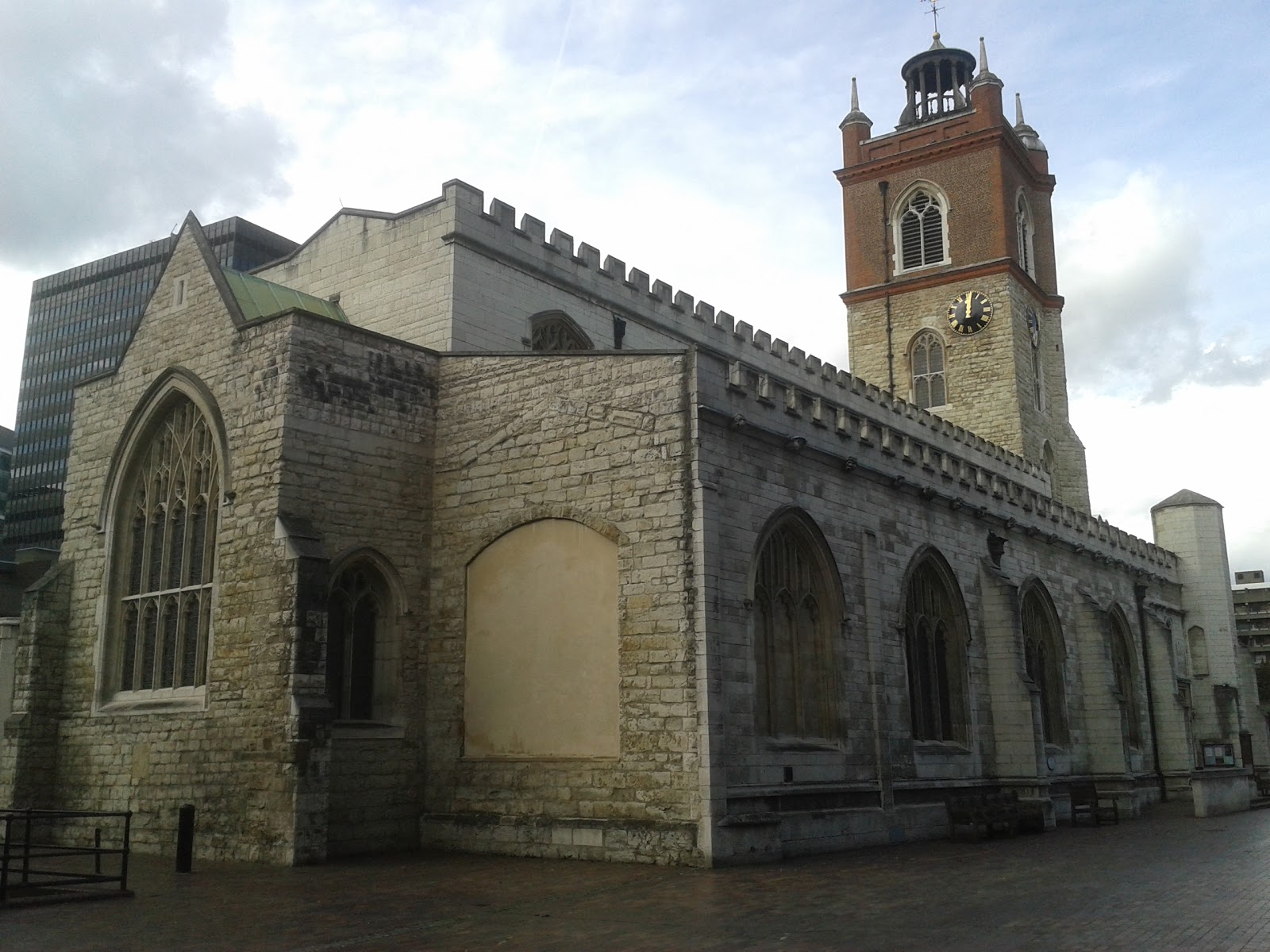 Yesterday we headed into London again – this time starting at Barbican Tube Station. We headed off with our first destination being St Giles’ Cripplegate – there has been a church there for nearly 1000 years, but the present church was built in 1394!! It’s a beautiful church – stuck right in the middle of apartments, office buildings, and the Barbican arts centre. There are nice ponds near the church with areas for the residents of the flats to enjoy.