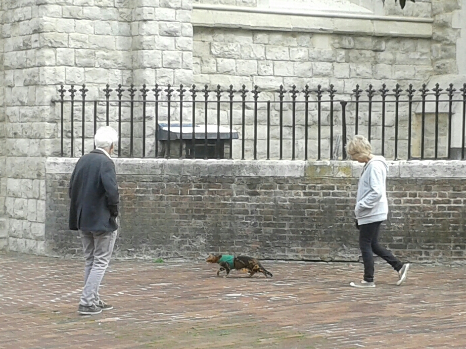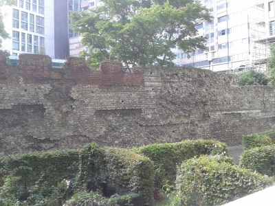 After we’d been inside we were exploring the outside area in which you can see part of the old London wall, and we came across a cat on a lead. She was a lovely Bengal cat, and of course I had to have a chat and a pat – you can see her on her lead below.