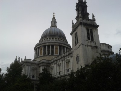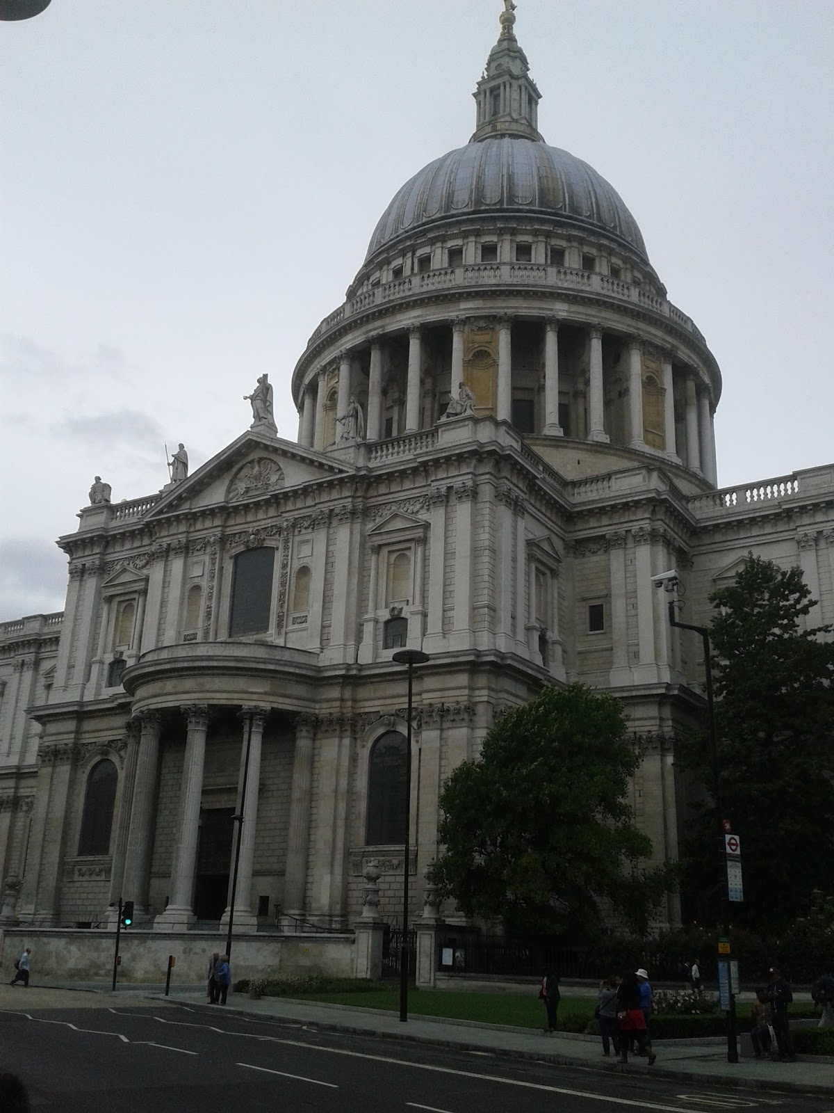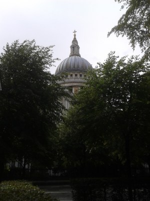 Our third and final church of the day was the grandest and the most breathtaking of the day – St Paul’s Cathedral. We didn’t go in we just enjoyed the outside – beautiful gardens and unusually blue trees. I remember years ago when I was doing my degree we were in a high rise building within view of St Paul’s and it started snowing – it was one of the most magical scenes ever, the dome of St Paul’s being covered with snow in the half light of a British winters day.