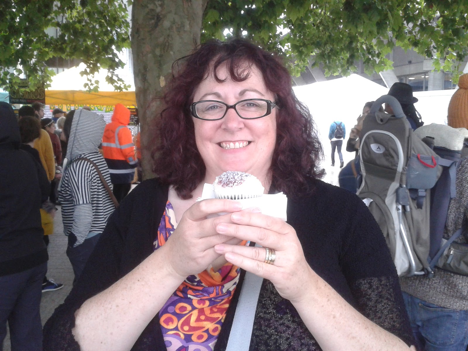 | My cupcake today was a chocolate, coconut, and raspberry from a stall that is usually at Greenwich market – Ruby Tuesdays of London – make sure you get one if you’re ever in the area as it was scrumdillyicious, and you’d never know that it was Wheat and Gluten free. |