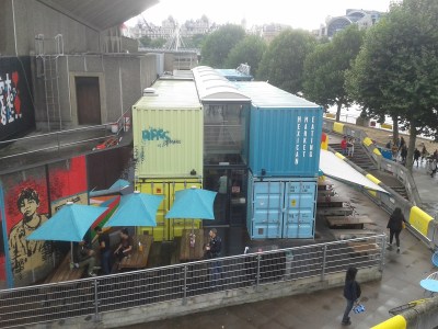 We then headed over the Thames via the Millennium foot bridge and wandered down the South Bank, discovering that it is the Thames festival at the moment so there were lots of stalls and street entertainers to look at. Lots of people around enjoying the sunshine when it chose to appear – we escaped into shops when it rained too much.