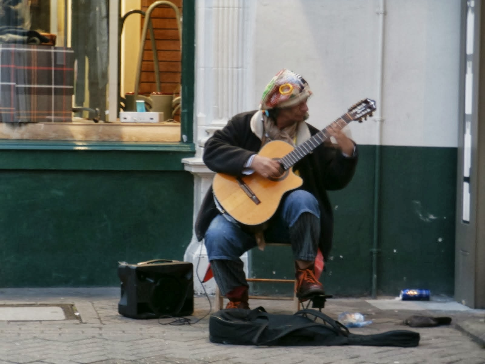 | Note the battered guitar – the sounds coming out of it were incredible, very talented young man |