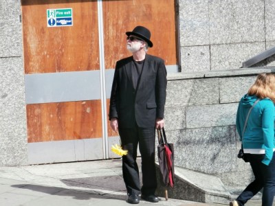 | Very odd man who was standing with a flower – some sort of inner performing we think |