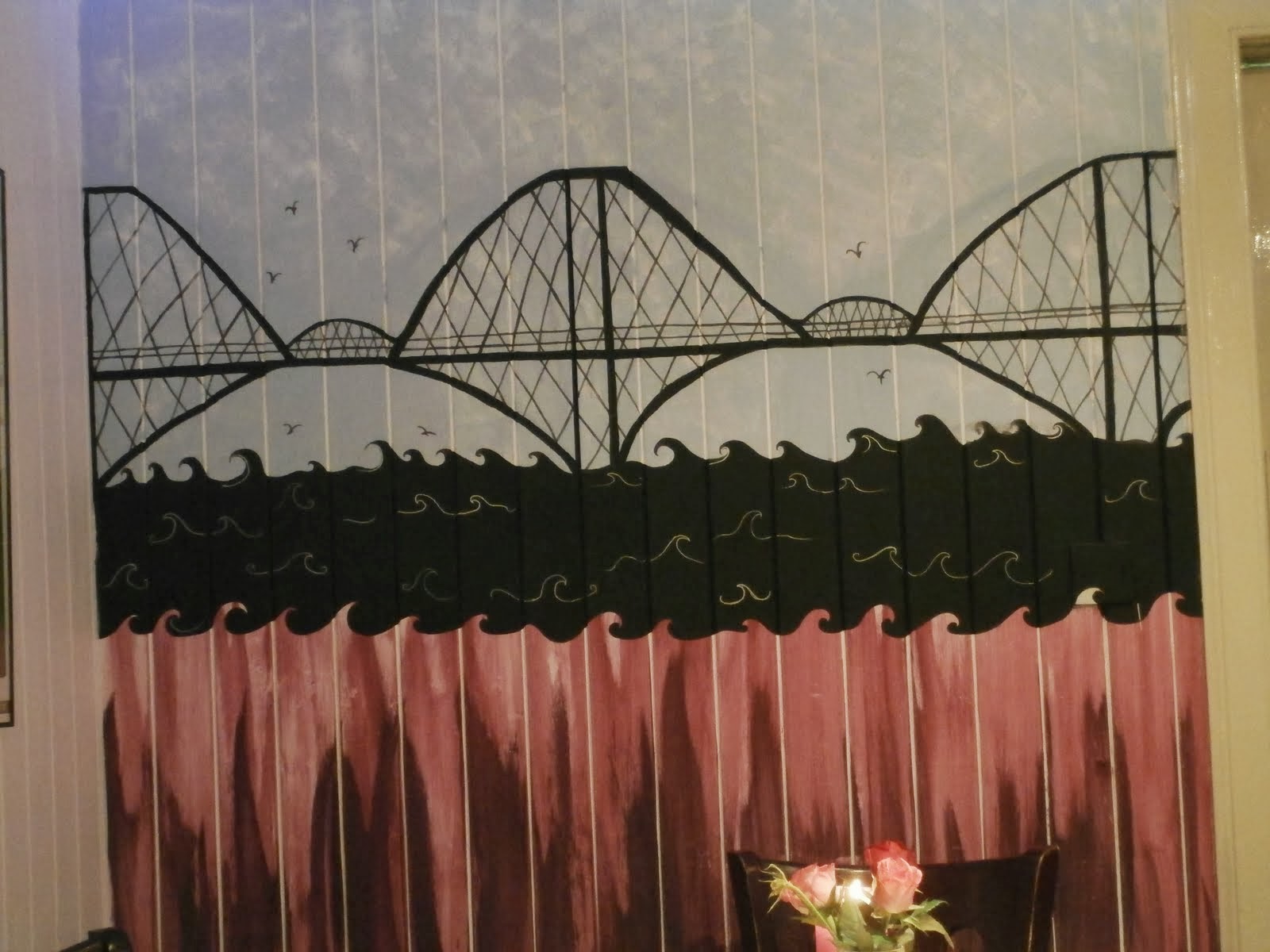 When we did go for our evening meal we ate at a lovely little place that had tables in the basement – as there were no windows they had painted the skyline of Edinburgh on the walls which looked fabulous and was very romantic though we don’t need any excuse.