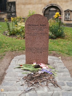 One of the legends of Edinburgh is that of Greyfriars Bobby. This is a little dog that stayed by his master’s grave until he himself died (some people say that it’s not true but I think they’re humbugs). Because of being a dog he wasn’t allowed to be buried near his master because of hallowed ground, but he’s not too far away. What’s really sweet is that along with flowers, people leave sticks and dog toys on his grave.