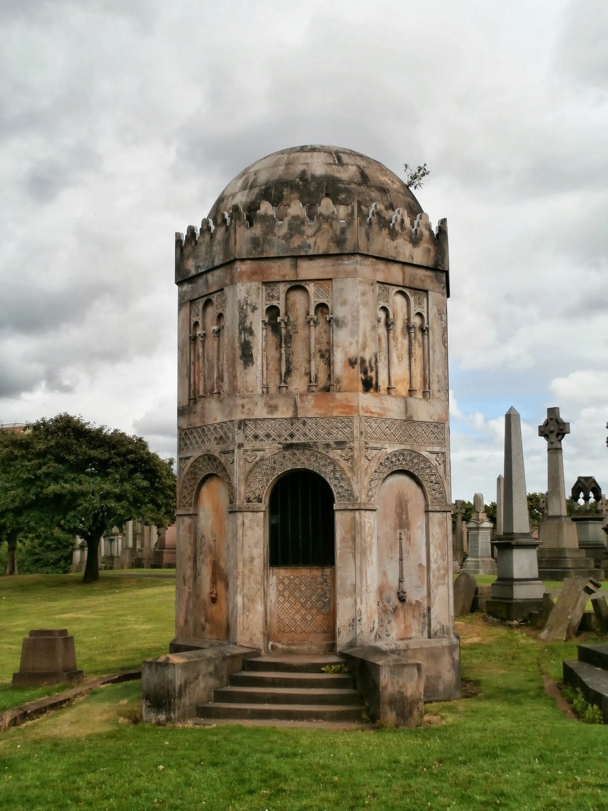 Whilst we were in Edinburgh we hopped on a train to Glasgow as one of the graveyards on my wishlist to visit was the necropolis. This is a very atmospheric place, overlooking the city and containing most of the eminent Glaswegions of the 1800’s.