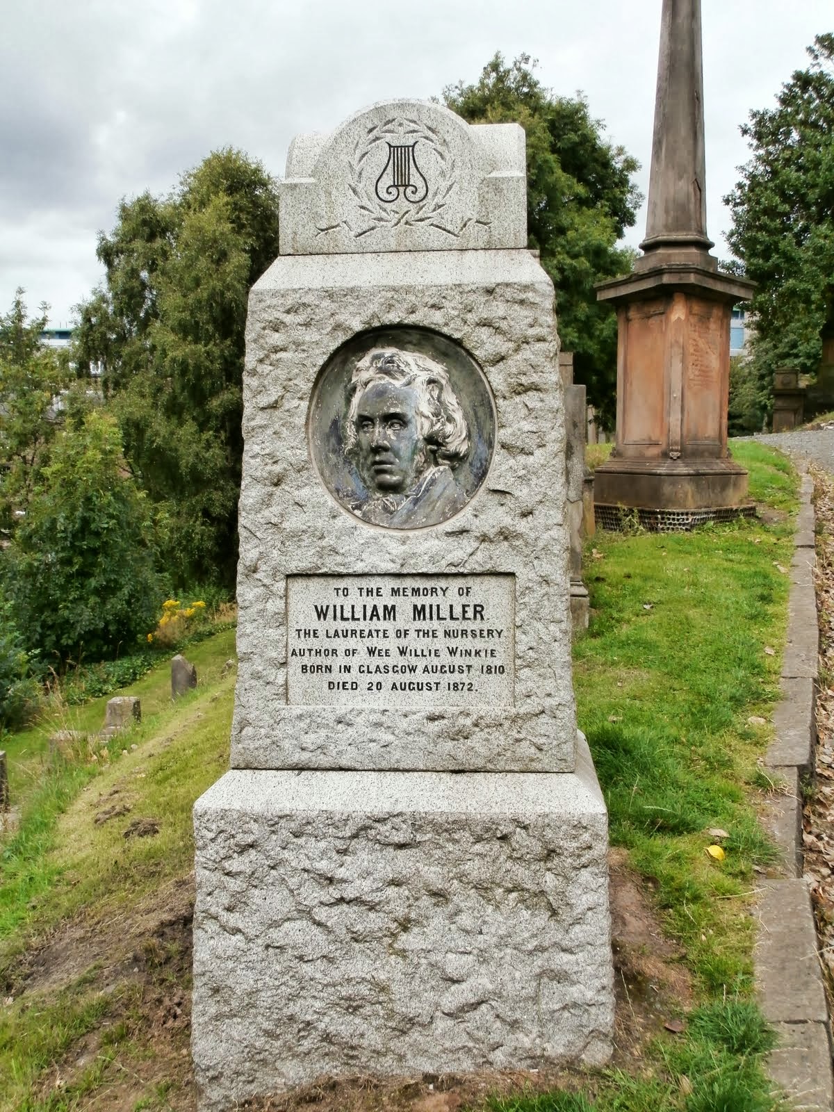 | One of the famous people we found was the author of Wee Willie Winkie – how lovely that someone who wrote nursery rhymes is commemorated. |