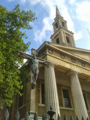 When we left the south bank we went past a church which had some lovely mosaic sculptures in the grounds, but what was really lovely was that the gardens were being used for games by locals. They even had a couple of sumo suits and were having great fun with them. If we hadn’t just eaten Ken and I would have offered to have a go.