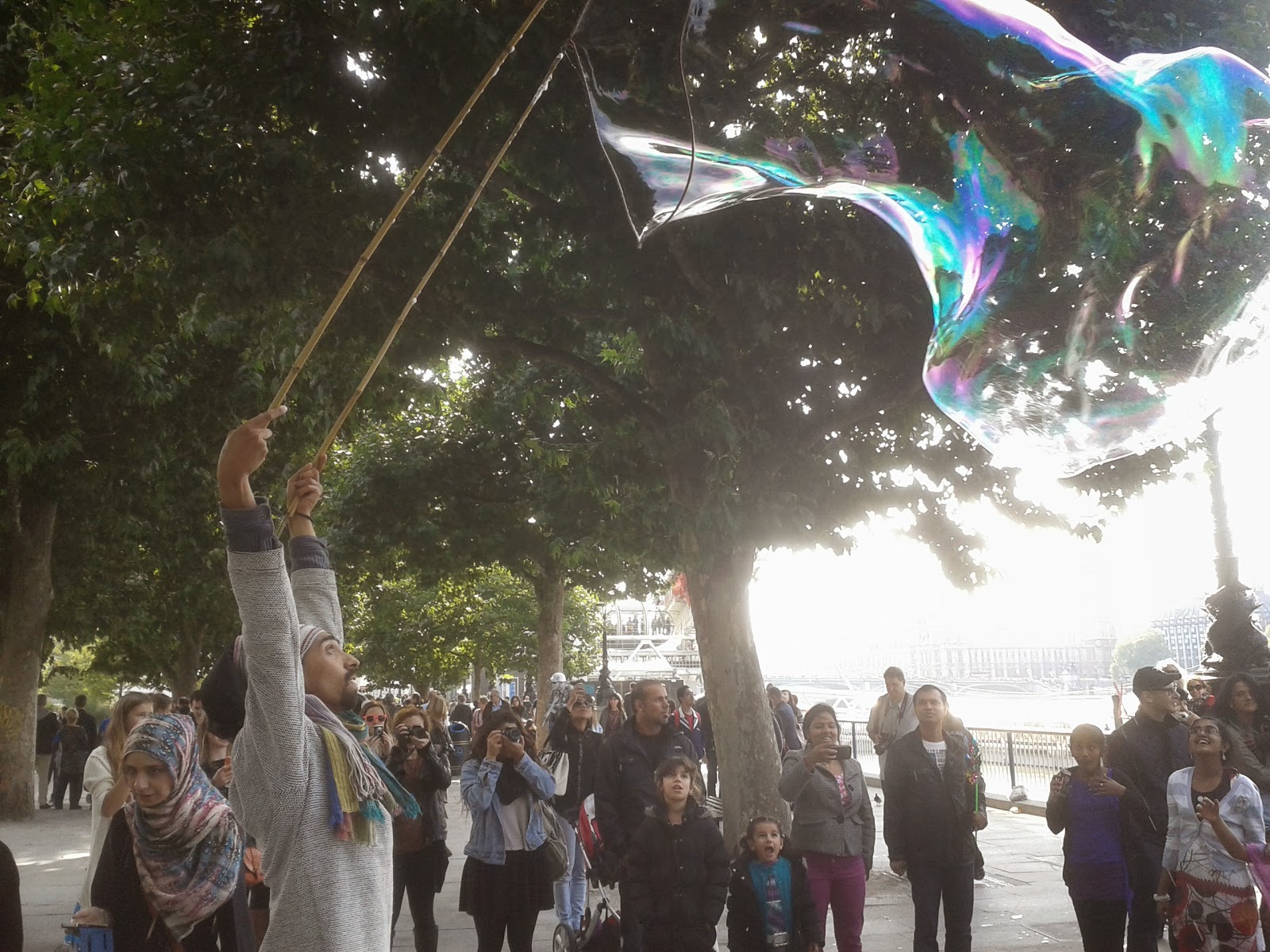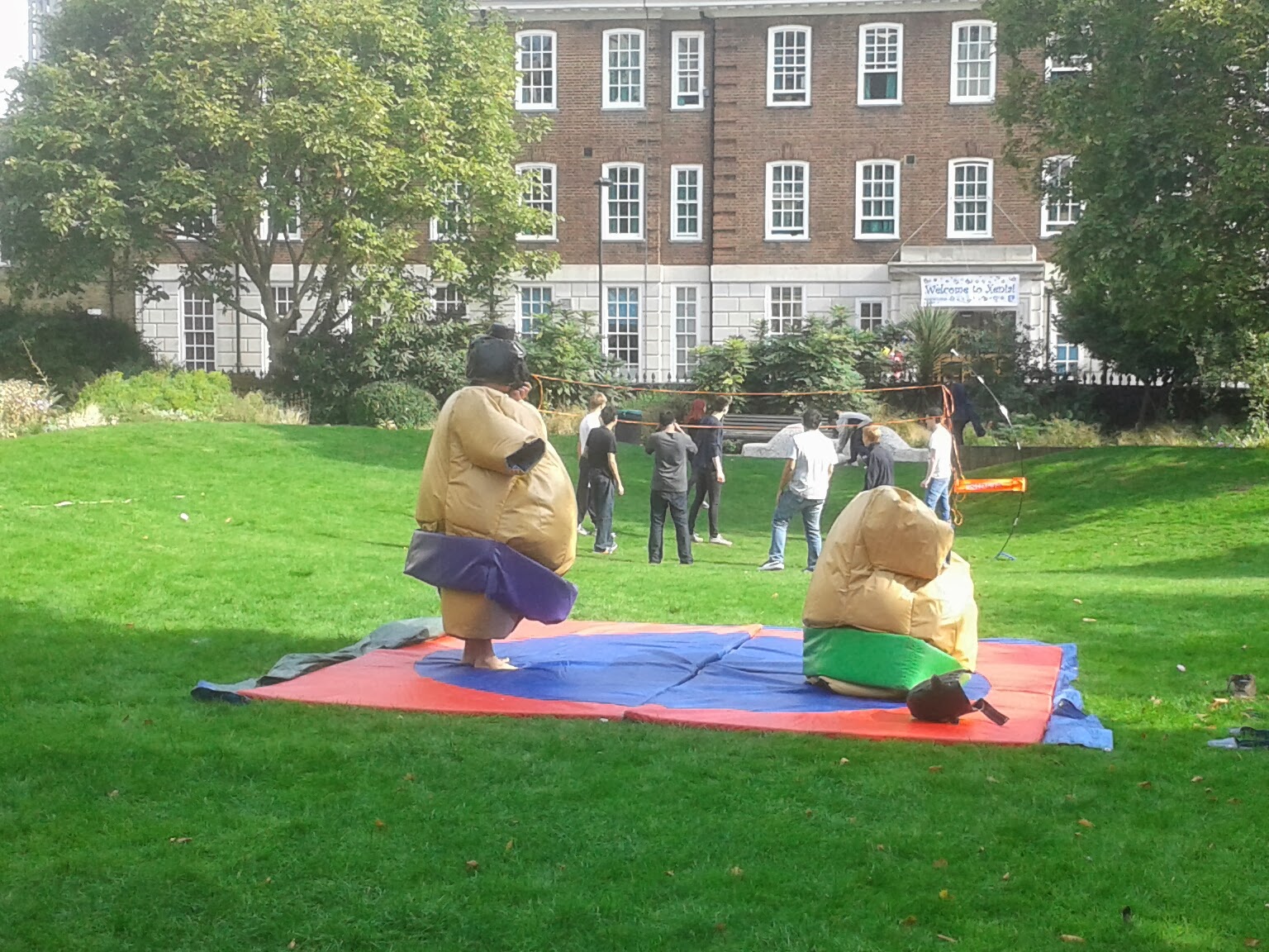 When we left the south bank we went past a church which had some lovely mosaic sculptures in the grounds, but what was really lovely was that the gardens were being used for games by locals. They even had a couple of sumo suits and were having great fun with them. If we hadn’t just eaten Ken and I would have offered to have a go.