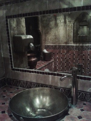 Now the next photo could signal a recurring theme in my posts, a picture of the bathroom, and again it was Ken’s idea. As you can see it’s very nice with a lovely brass basin.