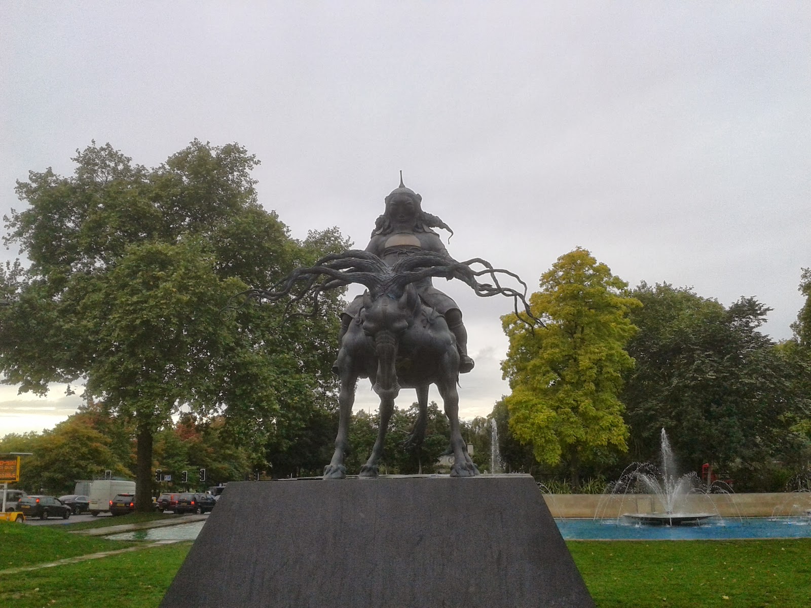 We were thinking of going to the Natural History museum but due to the two Wright boys staying in bed much longer than me, the queue for the museum was already around the block so we decided against that. Outside the museum was a man dressed in plastic bottles – I like to think it’s a protest against our throw away society but I’m sure it’s just a money spinner. As you can see Ken got into the spirit of things, posing with sword in hand. Jamie wasn’t so keen but plastic bottle man called him in and he went – great family shot.