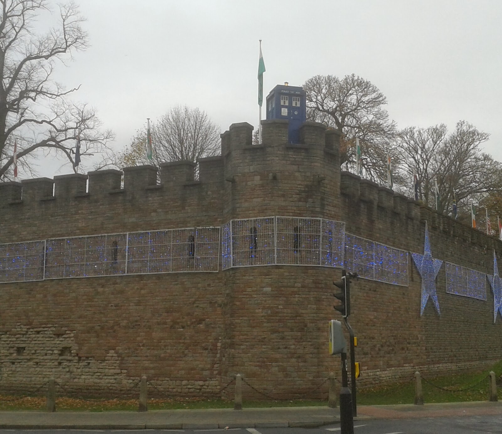 Now if you look closely at the next picture you’ll see something that’s slightly out of place on a castle wall – the Tardis!! Cardiff is the home of Dr Who – unfortunately David Tennant’s Dr didn’t pop out to say hello.