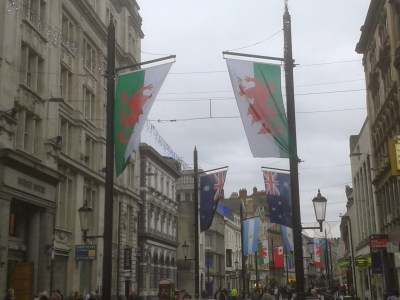 P.S: In the street that runs parallel to the millennium stadium (home of rugby) they had lots of international flags up – Wales and Australia next to each other.