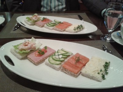 Afternoon tea started with lovely dainty open sandwiches – all scrummy.