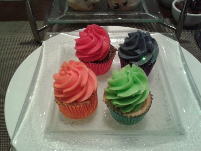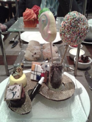 The next tier up was four very brightly coloured little cupcakes, each with fillings and lovely delicate flavours – also they had glitter all over them which made them extra special.