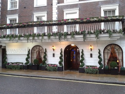 When we emerged from the underground at Green Park it was blowing a gale and raining which was great considering that we had a ten minute walk to the hotel so please excuse my hair in the photos.