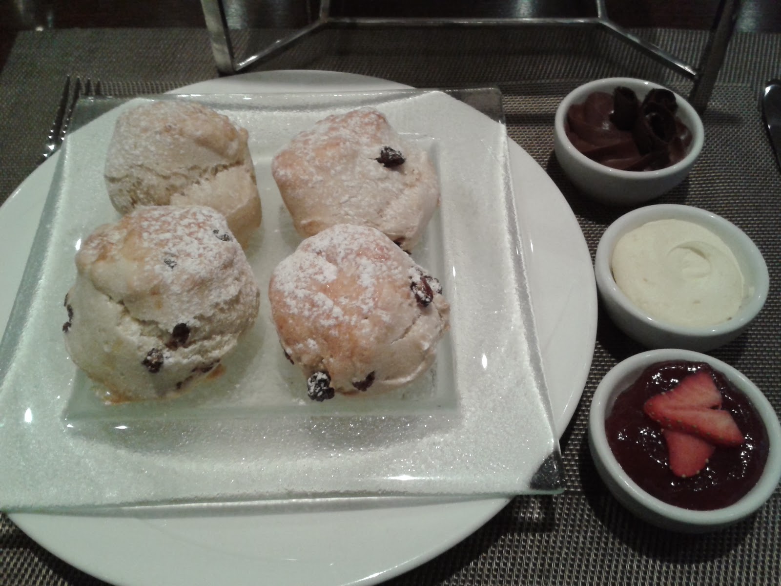 The scones came with a choice of chocolate spread or jam and clotted cream.