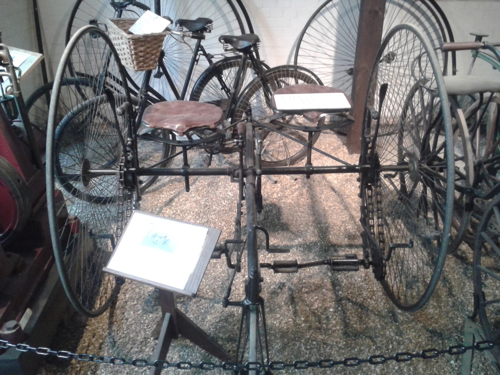 | This is a great old push bike – you sit side by side and each have a brake with the steering in the middle – Ken thought it looked like an accident waiting to happen |