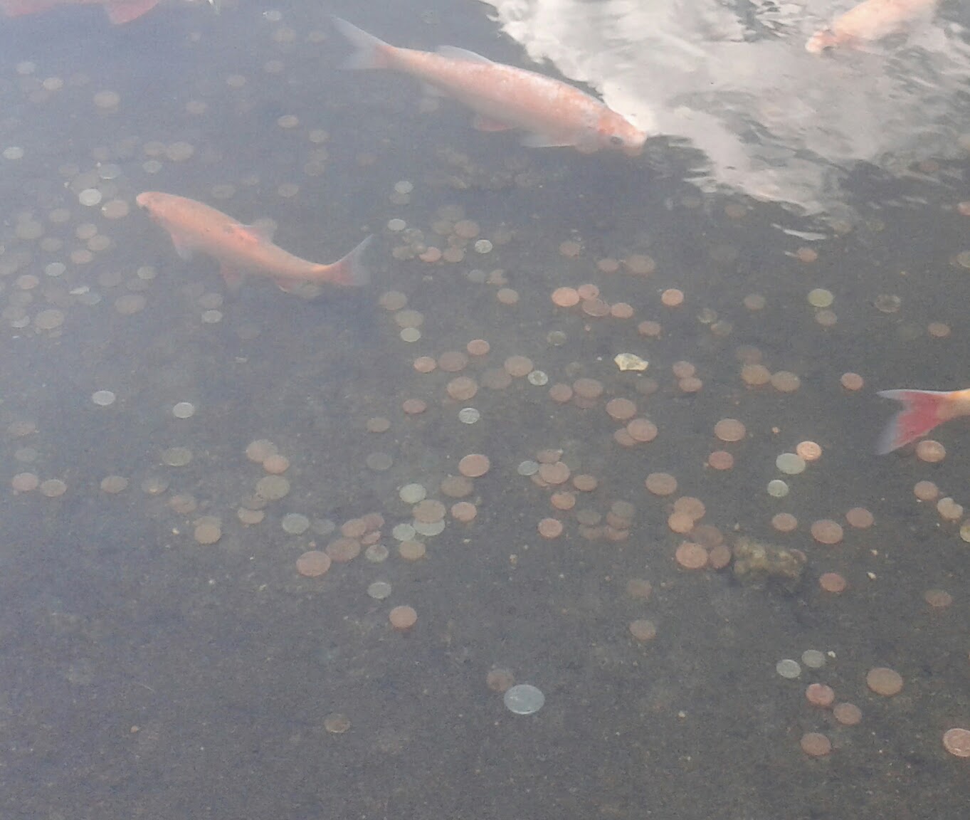 We’re always amazed at how people feel the need to throw coins into water – if you look closely at the bottom of the above picture – the large silver coin is an Australian 20 cent piece.