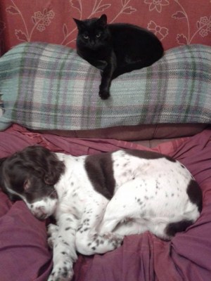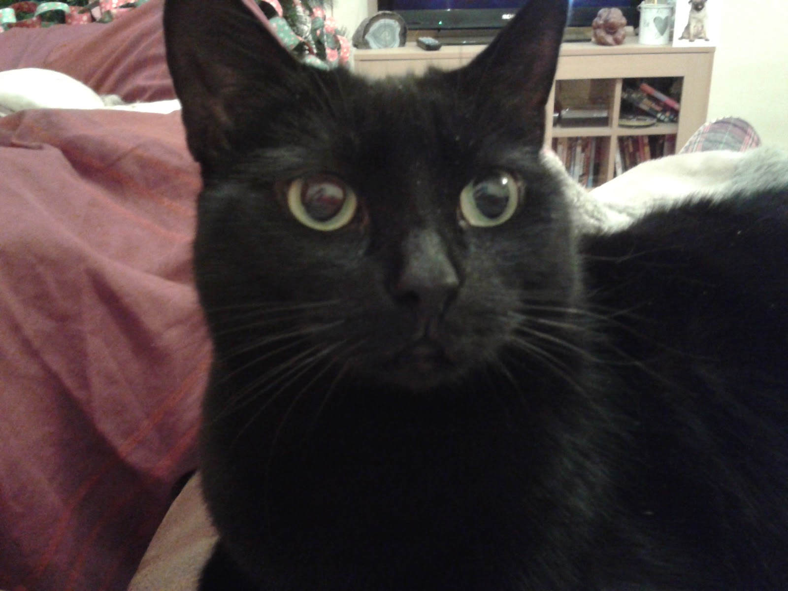 Our black cat’s name is Muffin, or to give her her full title, Muffin Monster. Her and her sister Cookie are 10 years old and are both such individual personalities. We got them when they were 8 weeks old and right from the start Muffin didn’t really like being held – she likes to give love on her own terms – when she does give love you feel very honoured. She will come and pad on me, and if I’m really lucky will get kisses on the chin.