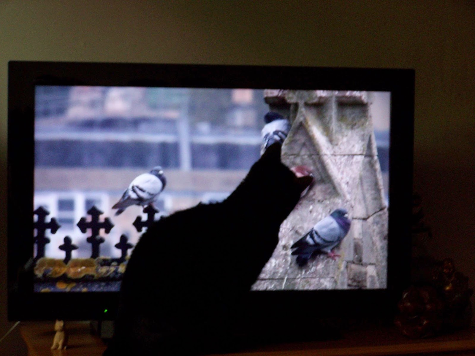 Muffin loves watching wildlife shows on tv, especially if there are birds on. One of her favourite shows is Springwatch – the picture below is when she thought she might be able to catch a pigeon on the screen.