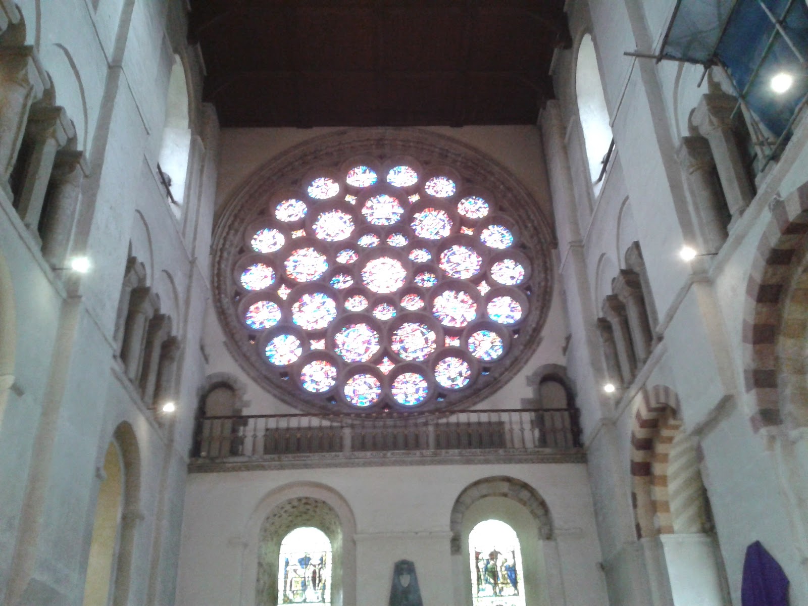 There are lots of beautiful stained glass windows in the Cathedral but the best one is the rose window – here it is from the outside and from the inside.
