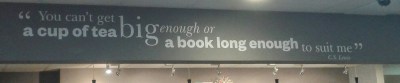P.S: Quote I liked in the bookshop except I would replace the word tea with skinny latte.
