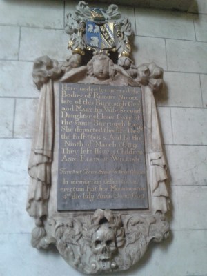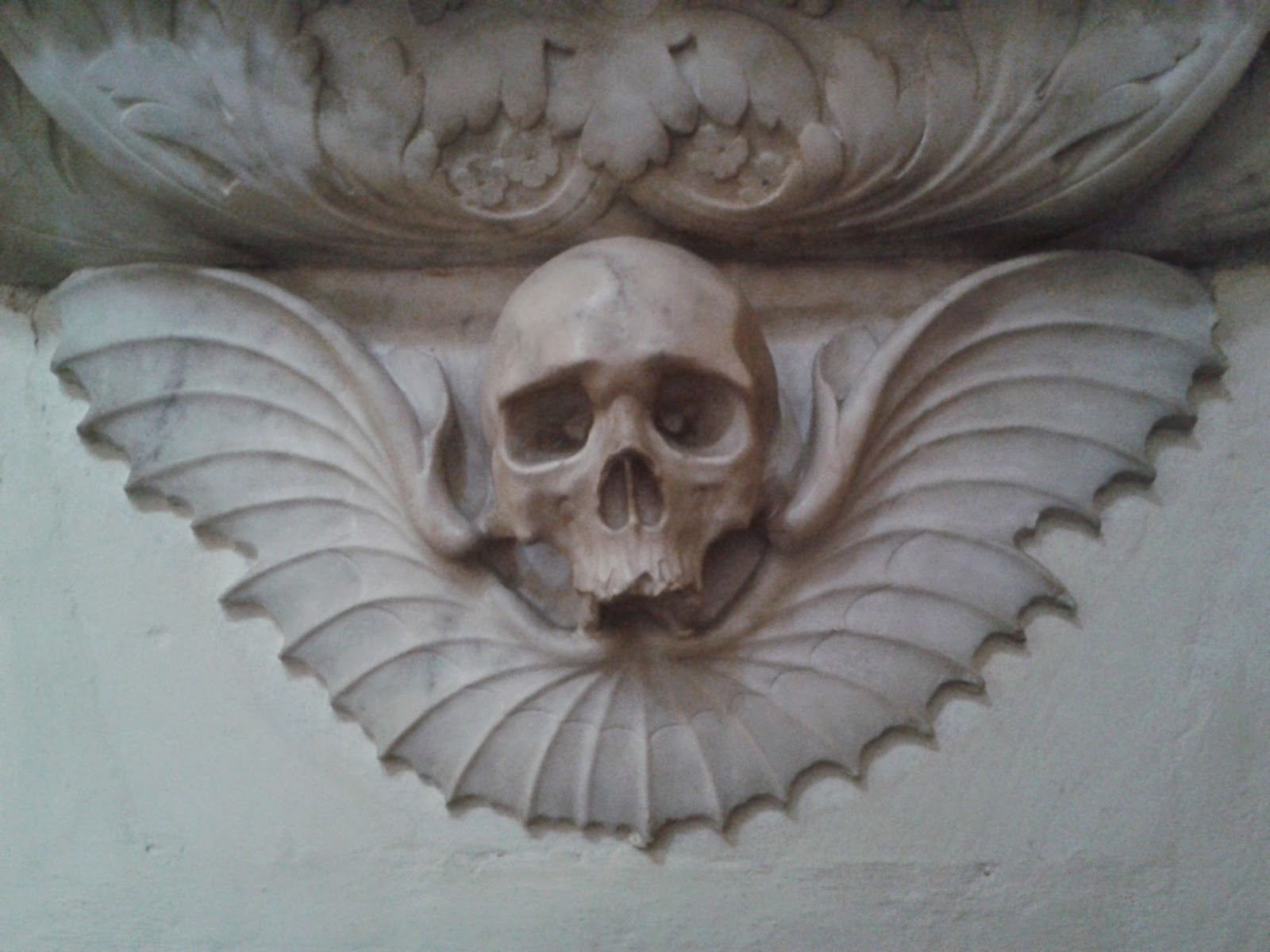 There are lots of memorials around the building, and these two had very scary looking skulls on them.