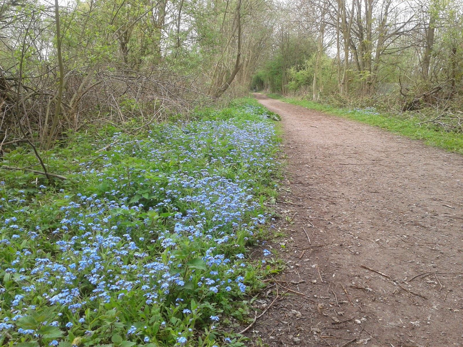 After a while we left the canal path to walk along the Ebury Way which follows the route of an old railway line that ran from Rickmansworth to Watford – we were only on a small part of it, the actual route covers 3 miles. It was really pretty walking along under the trees with lots of forget me nots edging the path.