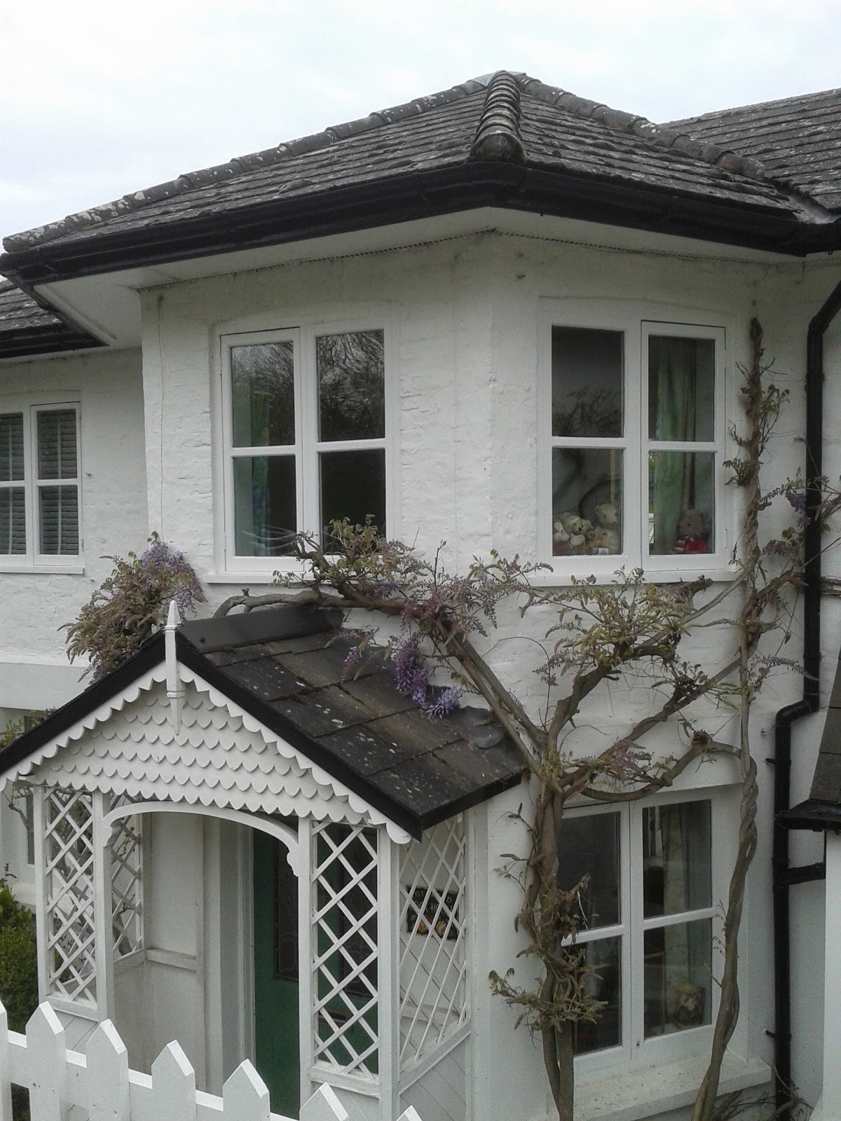 Apparently people who hang around locks are known as gongoozlers by the canal users – they’re a bit like bus and train spotters – I don’t think we were there long enough to earn the name. Near the lock was a lovely old lock keepers cottage covered with flowers and if you look closely at the top window you’ll see several teddy bears waving at people passing by..