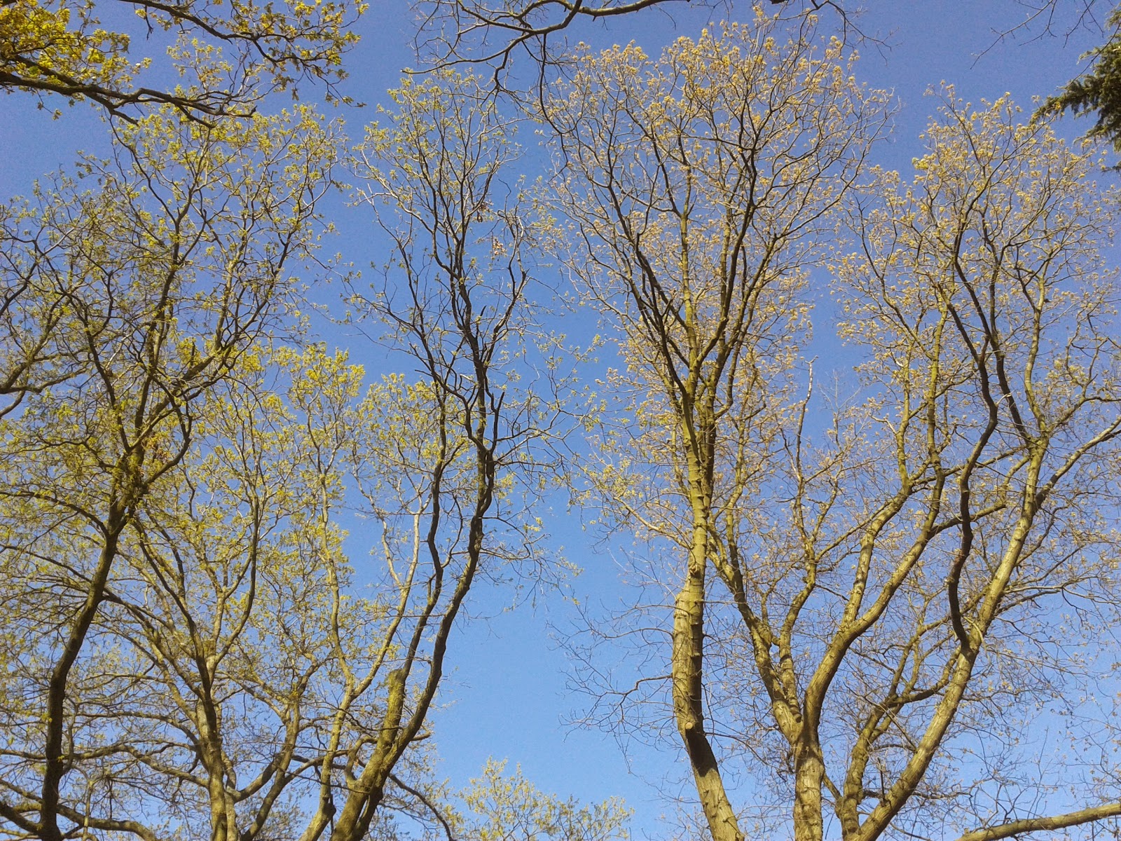 Clear blue sky through the trees
