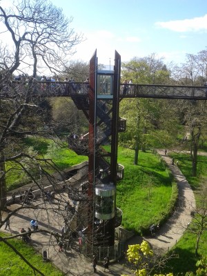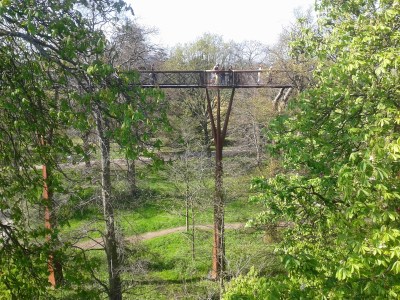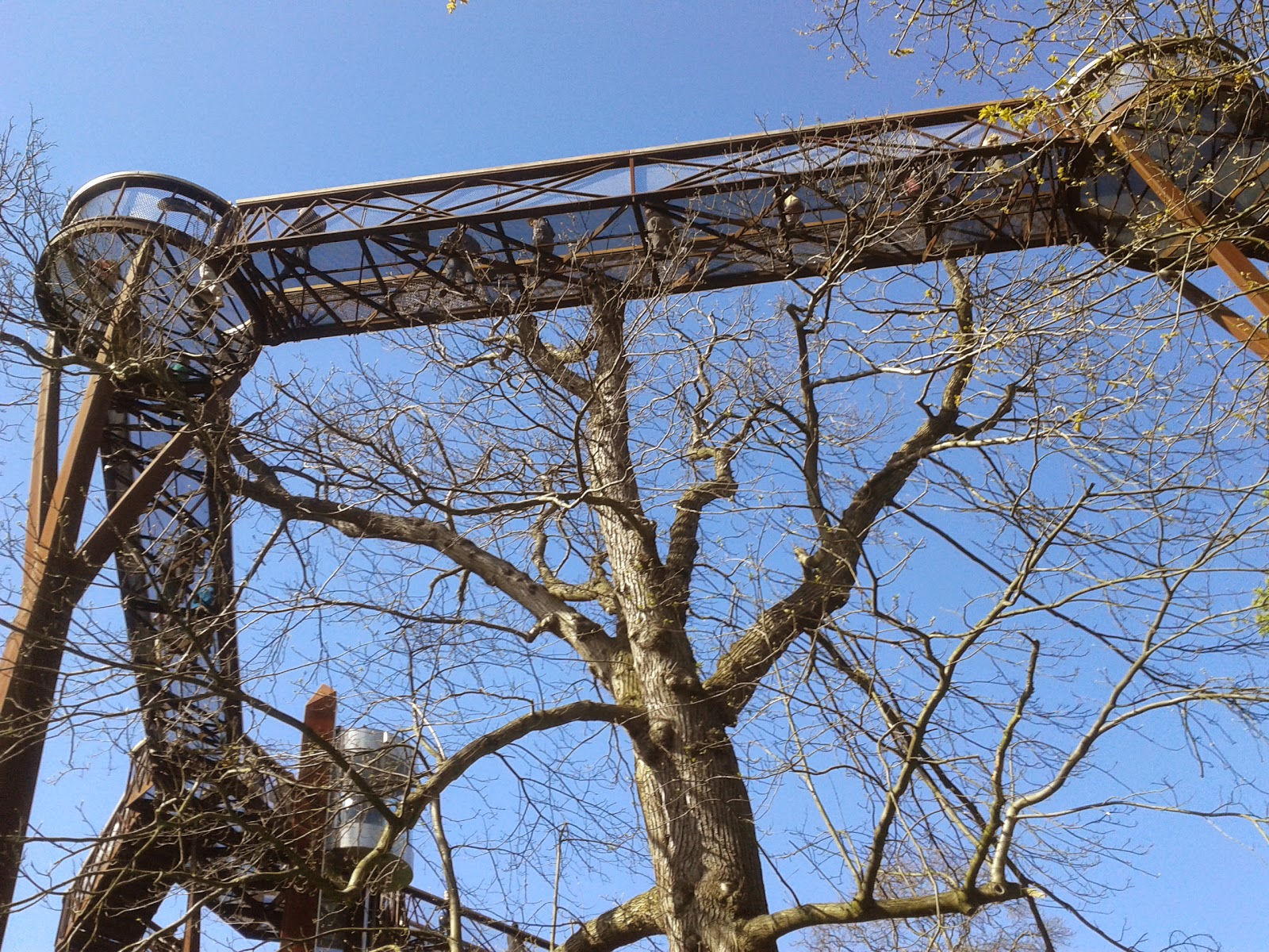 Ground view looking up at the walkway
