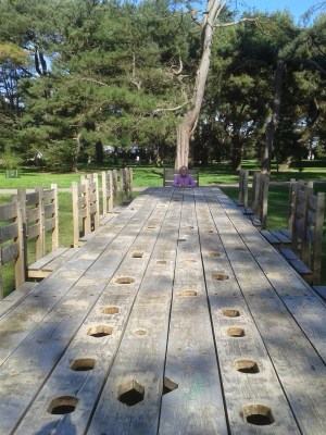 There are several sculptures dotted around amongst the trees and here are a couple we liked – a bear (slightly out of context) and a huge table with Ken sitting at the head.