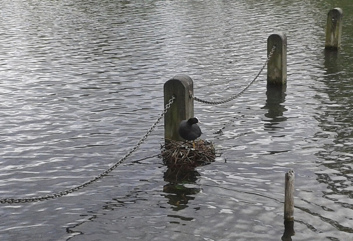 There are lots of beautiful birds (feathered) including a coot on it’s very fine nest and a very fancy mandarins duck.