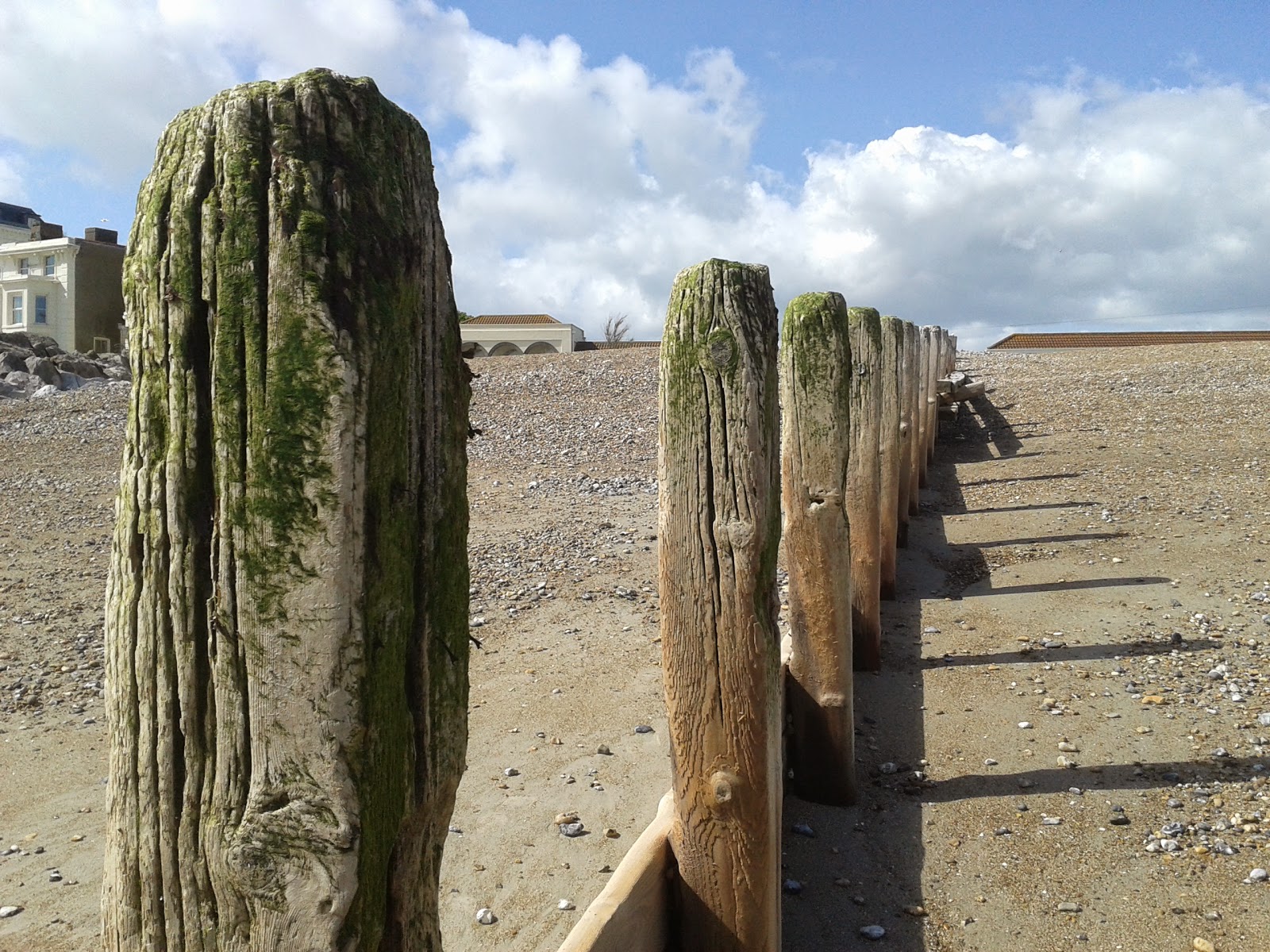 The beach is a mixture of pebbles and sand, and unfortunately there was no sea glass. Lots of lovely weathered wooden sea groynes so of course Ken wanted me to take an arty shot.
