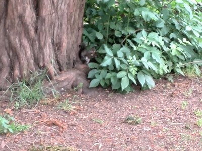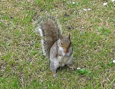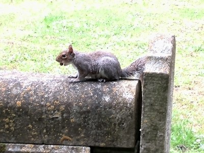 The closest we got to a black squirrel was this shy chappy who has a bit of cross breeding going on – if you look closely you can see that he has a black tail and darker patches on his face and arms.
