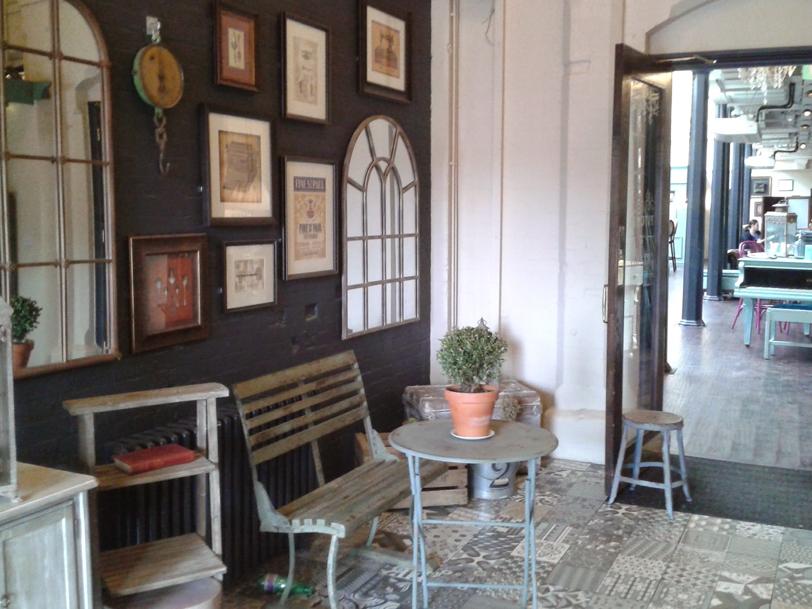 We stopped for lunch at Pitcher and Piano which is in the building that used to be the corn exchange and has been decorated beautifully – very vintage. Lots of the furniture I would have in my dream home. The food was scrummy and served in blue and white enamel bowls which added to the ambiance. Here’s a few pics from inside.