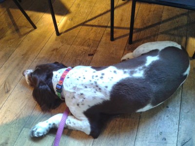 We went to Harris and Hoole in Rickmansworth to cool down and I think Bertie Boo appreciated the coolness of the wooden floor.