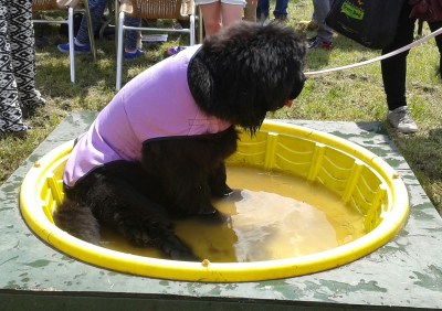 As it was a lovely sunny day there were lots of bowls of water around the field so that the puppies could keep hydrated, and there were also kiddie paddling pools for our furry friends to cool off in. I just Loved this puppy as she looked so adorable in her pink t-shirt enjoying the water.
