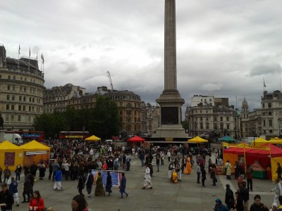 Sunday was back to a traditional day of fun – get the tube into London and wander aimlessly. We got off at Charing Cross station, walked to Trafalgar Square and discovered that there was a Hare Krishna festival happening – lots of food stalls around the square and the smells were amazing.