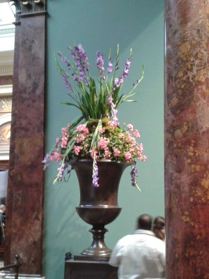 If you’re ever in London you must go to the gallery – it’s free to enter and there is so much to absorb you need to give yourself a long time or go back regularly. You’re not allowed to take pictures inside (understandably) but I very cheekily took a picture of the beautiful flower arrangement as it features one of my favourite flowers, the gladioli – they always make me think of Nanna H.
