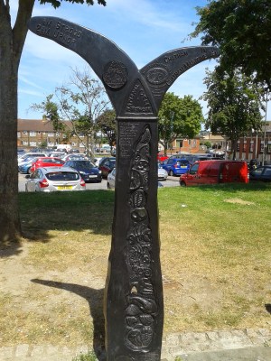 When we stopped we thought we were already in Rochester but we were actually just short of it in Strood – still found a lovely church (no graveyard) and a rather interesting statue – Ken thinks it’s something to do with shipbuilding.