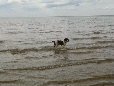 After I’d caught him and reattached the lead we both went for a wander in the sea – it’s very shallow for quite a way.
